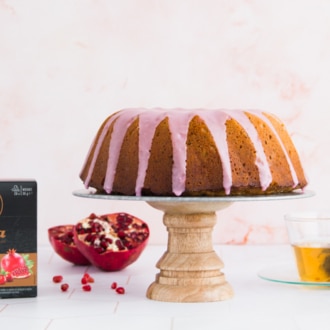 Κέικ γιαουρτιού αρωματισμένο με πράσινο τσάι Perla με κράνμπερι και ρόδι